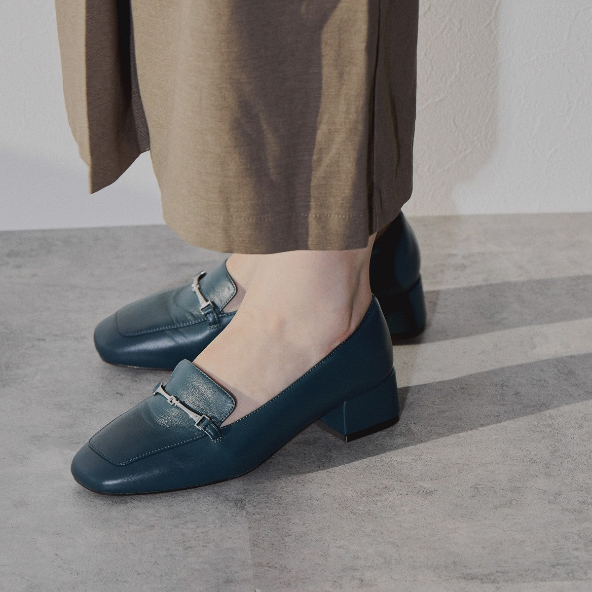 華奢なゴールドのビットモチーフが女性らしいヒールローファー。