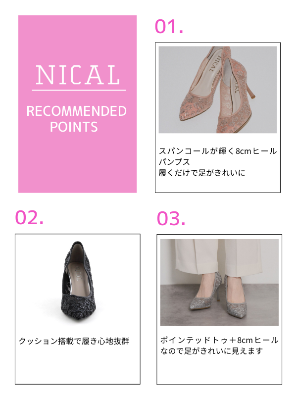 履くだけでデニムやパンツスタイルも女性らしくアップデートしてくれます。 定番ながら透け感が新鮮なブラック、クールな印象のグレー、足元を明るくしてくれるピンクの3色展開。春夏のオケージョンシーンを華やかに彩ってくれること間違いなしのアイテムです。