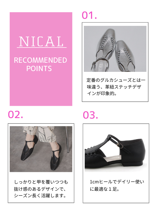 定番のグルカシューズとは一味違うパンプスは、しっかりと甲を覆いつつも抜け感のあるデザインで、春先に取り入れたくなる一足。