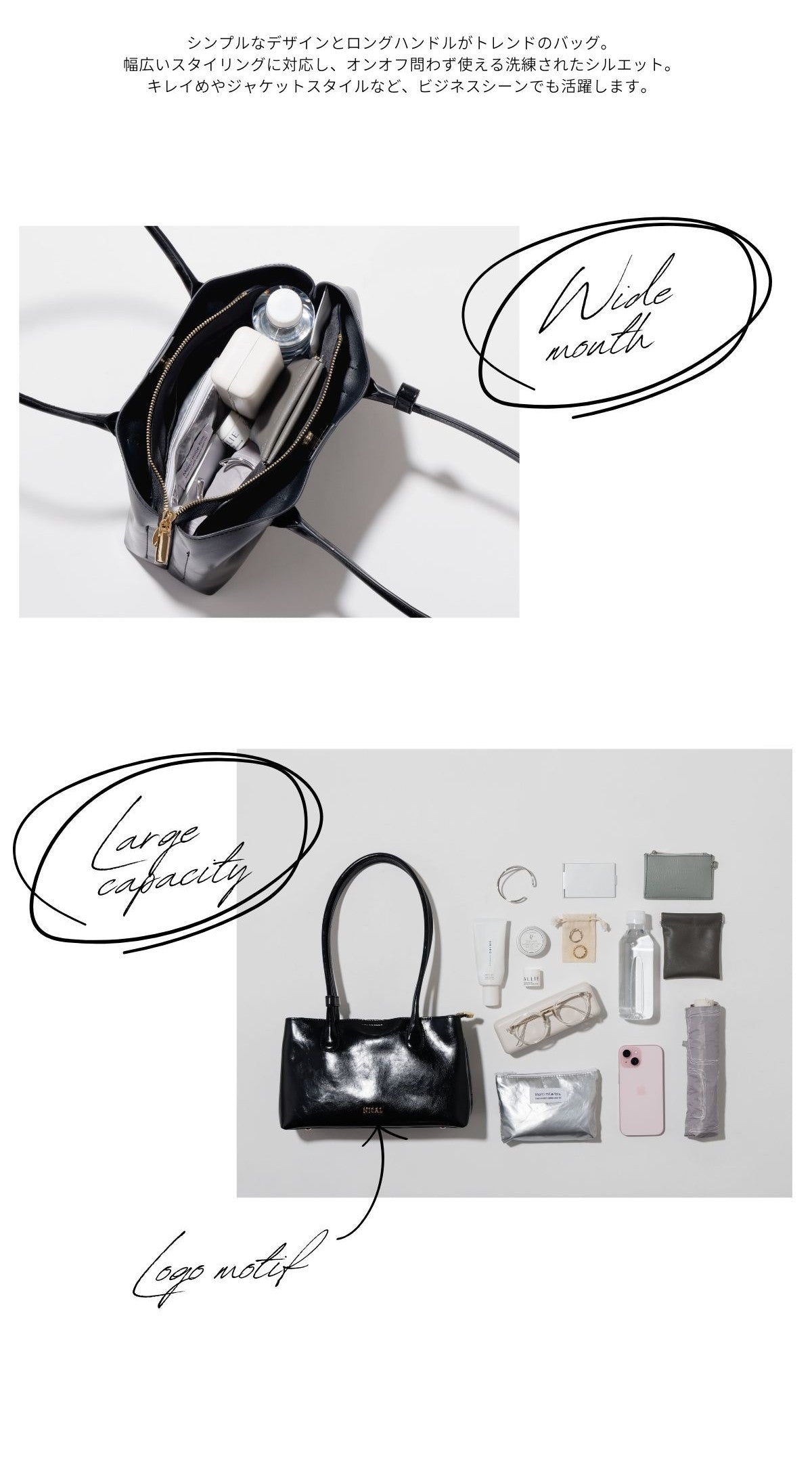 シンプルなデザインとロングハンドルのトレンドデザインのバッグはスタイリングの幅広くマルチにお使いいただけます。オンオフ問わず合わせやすい洗練シルエットで、キレイめやジャケットスタイルなどビジネスシーンでも活躍間違いなし。