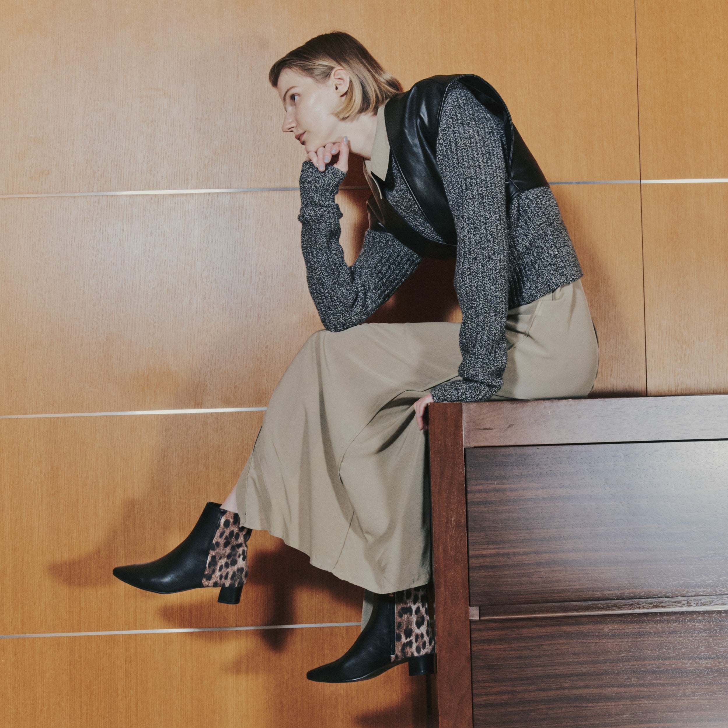 ブラック、ブラウンはソールを同色でまとめて合わせやすく、シルバーはソールをブラックにすることで足元を引き締めてくれます。バックファスナーでコーデの邪魔をしないすっきりしたデザインです。