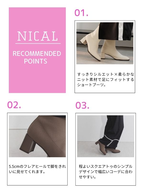 すっきりとしたシルエットながら、ニット素材が柔らかく足にフィットするショートブーツ。