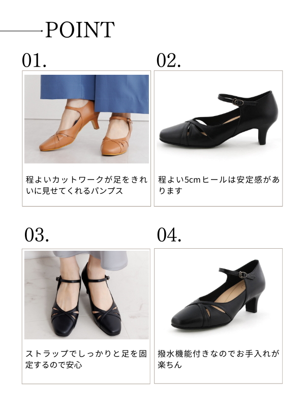 【快適ウォークパンプス】5㎝ヒールカットワークストラップパンプス/605005