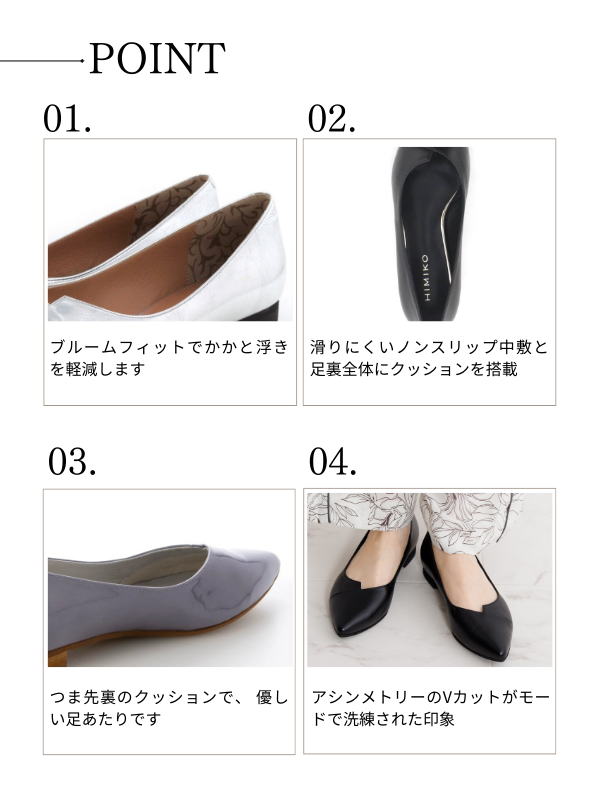 【25AW新色】アシンメトリーVカットフラットパンプス/641316