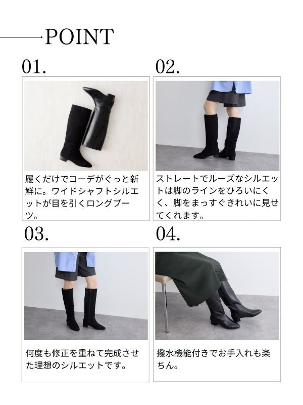 履くだけでコーディネートを一気にアップデートしてくれる、ワイドシャフトシルエットが新鮮なロングブーツ。