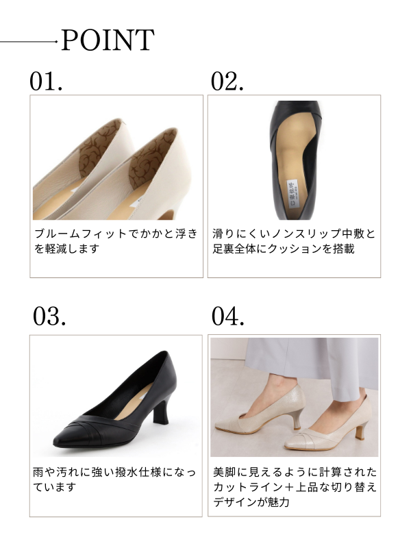 5.5cmヒールで履きやすく、オフィスコーデやお子様の学校行事など、きちんとした雰囲気に仕上げたいフォーマルなシーンにもおすすめです。