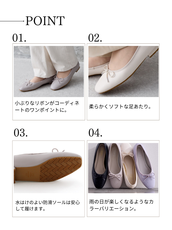【耐水】フラットリボンバレエレインパンプス/644101