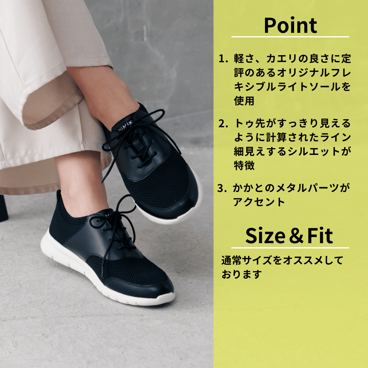 軽くてカエリの良いオリジナルフレキシブルライトソールを使用したニットスニーカー。人気のデザインに新色のパープルが登場♪トゥ先がすっきり見えるように計算されたライン、細見えするシルエットでHIMIKOならではの高級感と品の良さをのぞかせます。 かかとのメタルパーツや本革素材を使用しているので、スポーティー過ぎない大人のスニーカーです。