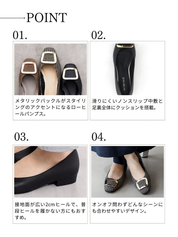 【25AW新色】スクエアバックルローヒールパンプス/651110