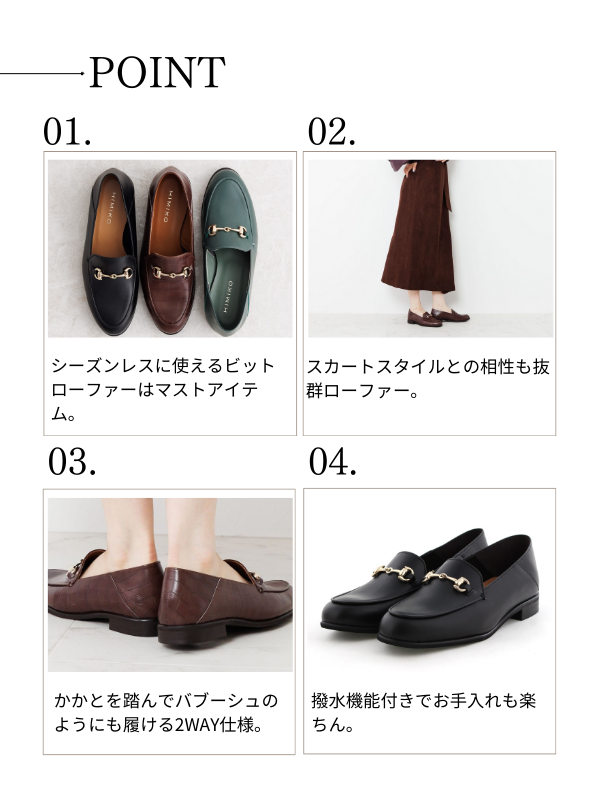 シーズンレスに使えるアイテムのラウンドトゥのビットローファー。