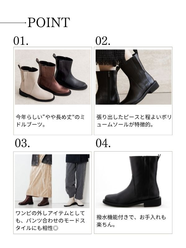 【25AW】サイドジップミドルブーツ/651414