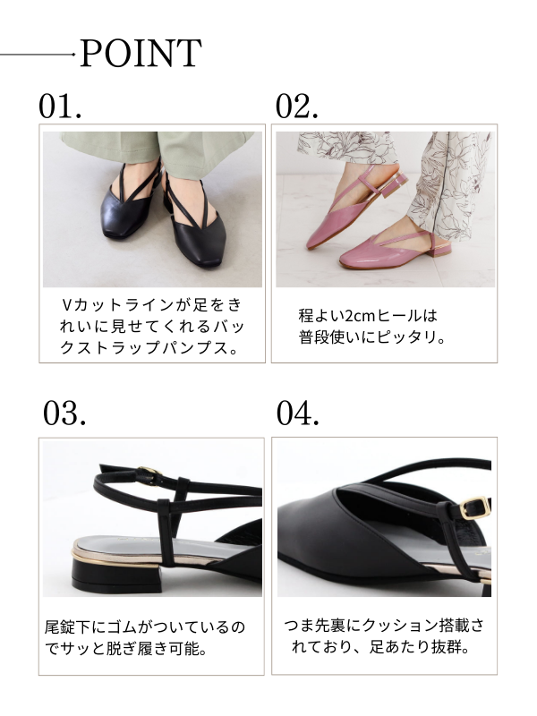 【SALE】スクエアトゥバックストラップパンプス/651505