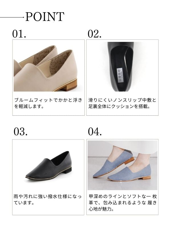人気のフラットパンプスにビンテージデニムのような風合いに仕上げた牛革を使用したブルーが登場!