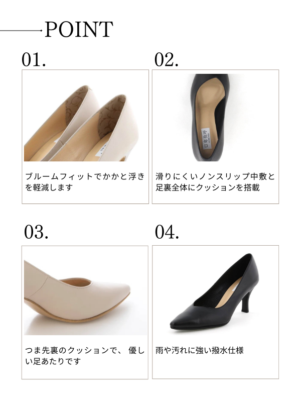 7cmのヒールの高さを感じさせない、安定感のある履き心地です。オフィスコーデやお子様の学校行事など、きちんとした雰囲気に仕上げたいフォーマルなシーンにもおすすめな一足。シーンを選ばないブラック、ベージュのベーシックカラーとオケージョンスタイルにもおすすめなシルバーの3色展開です。