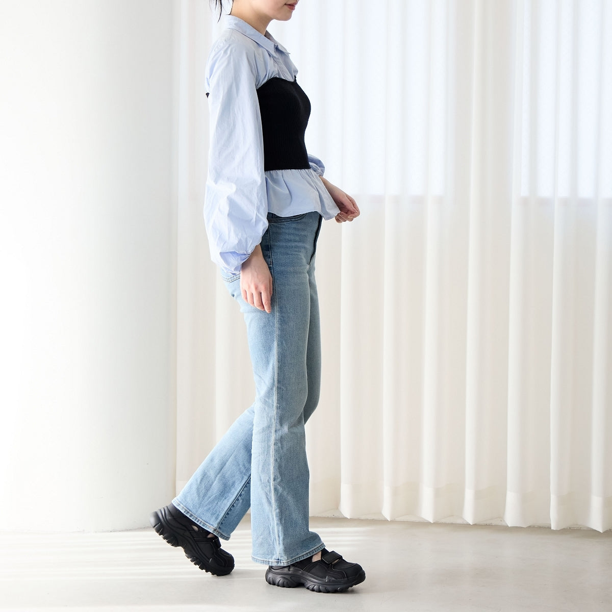サンダルとスニーカーのいいとこどりで、ソックスなどと合わせシーズンレスにお楽しみいただけます。ソックス合わせにはいつものサイズより1サイズ上がおすすめです。ベルト部分はサテン調の生地を使用し、カジュアルながら女性らしい仕上がりに。ボリューム感たっぷりの厚底ソールがスタイルアップも叶えてくれる一足です。