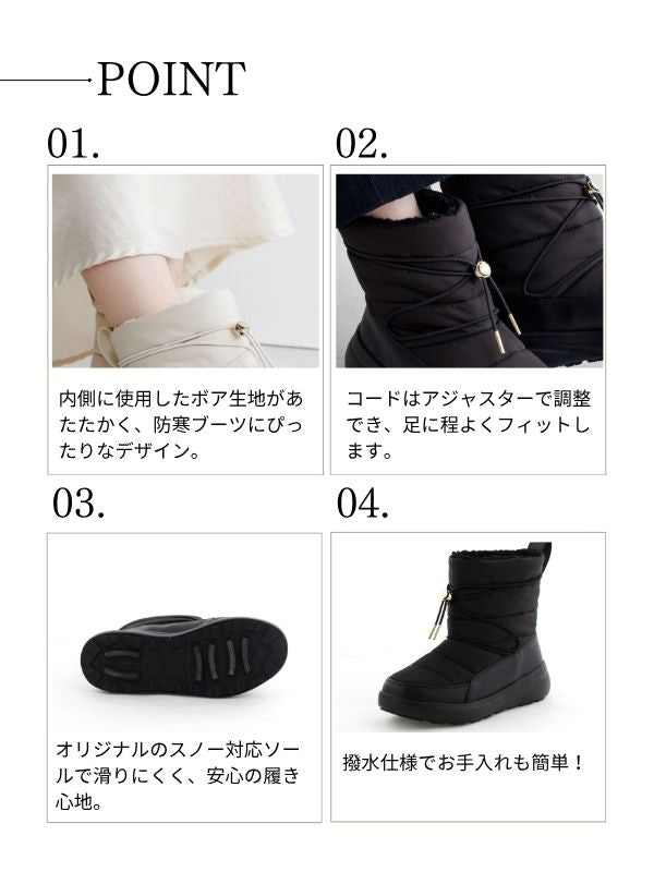冬の足元に活躍するブラック、アイボリーの2色展開です。